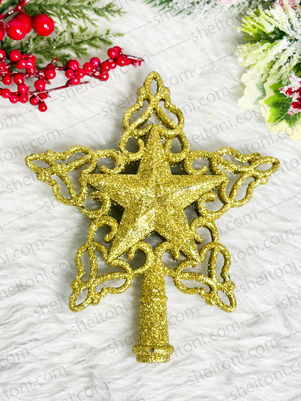 خرید اینترنتی ستاره درخت کریسمس طلایی کیفیت عالی دارای سوراخ در انتهای ستون ستاره ی درخت کریسمس